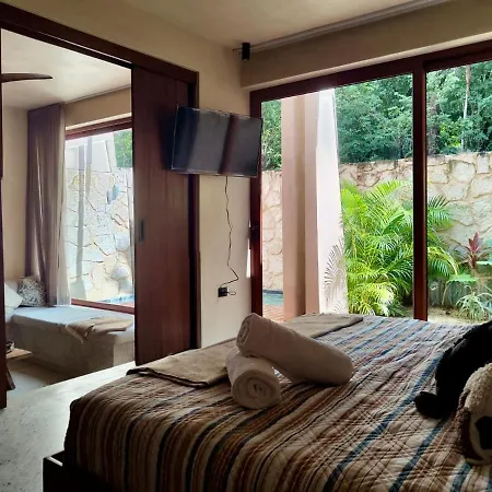 此住所提供10间客房.这些客房配有个人保险箱,沙发 和咖啡机/煮茶机,让您在图卢姆过得愉快. 所有客房都有分开的洗手间 和淋浴,让每一位客人都满意. Condohotel Tsonot, En Luum Zama提供俯瞰花园的客房.